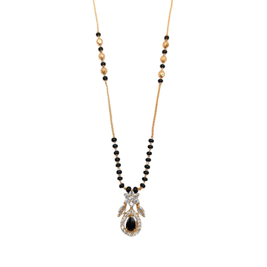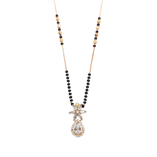 Floral Teardrop CZ Pendant Gold Mangalsutra